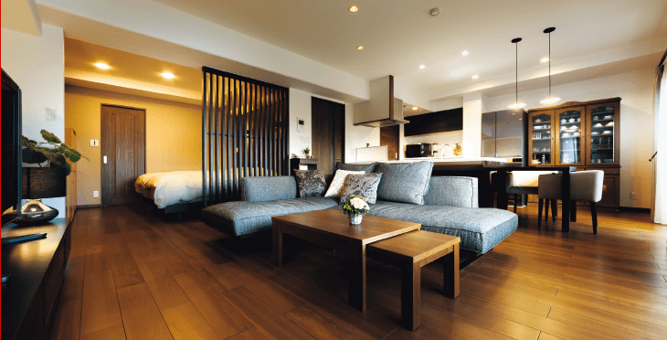 バルコニーに面した和室と洋室を広々とした明るいLDKに。