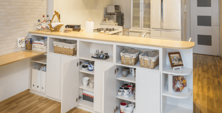 収納たっぷりのキッチンカウンター。