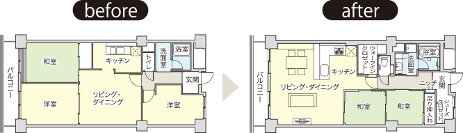 昔ながらの間取りから、ゆとりの空間へ