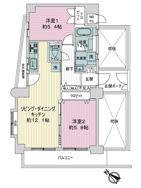 ・南西・北西の角住戸につき採光、通風ともに良好です。