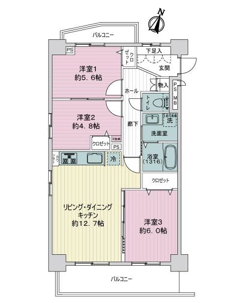 リノベーション物件、南・西角住戸、3LDK