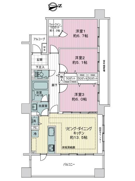 部分面積 - アルコーブ2.14㎡