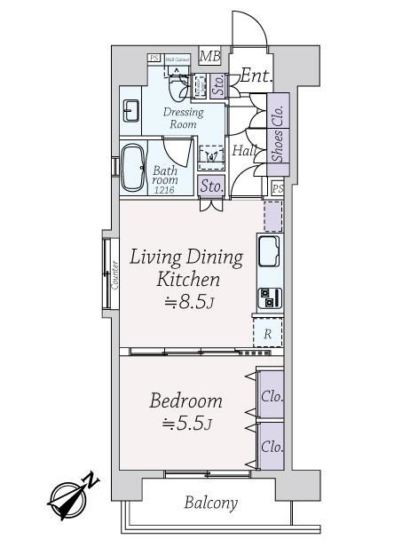 8階部分眺望良好・角住戸 専有面積40.16平米 1LDK
