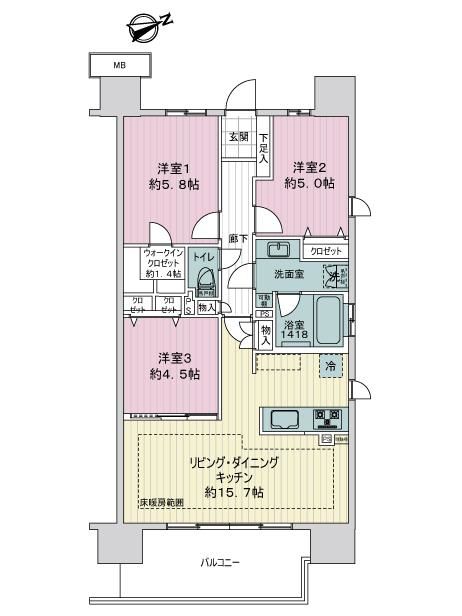 最上階14階部分・角住戸