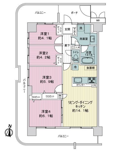 ・75.26平米 4LDK 南・西角住戸