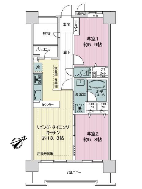 ・14階建4階部分 専有面積57.09平米