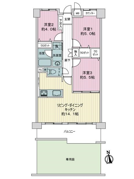 ・1階住戸、約20平米の専用庭あり(専用庭使用料:月額1000円)