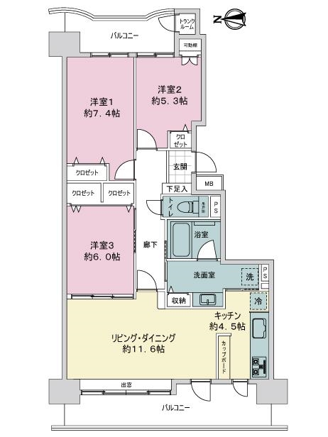 専有面積にトランクルーム面積(0.80平米)を含みます。