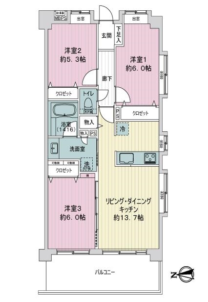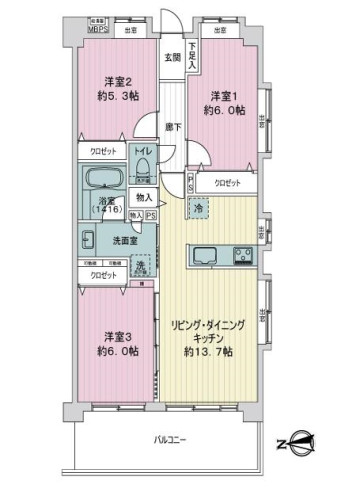 ・専有面積約68.32平米/西・南角住戸