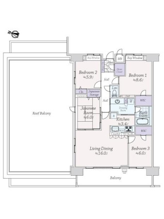 ・玄関にシューズクローク、居室に2つのウォークインクロゼットがあり収納力の高いお部屋です