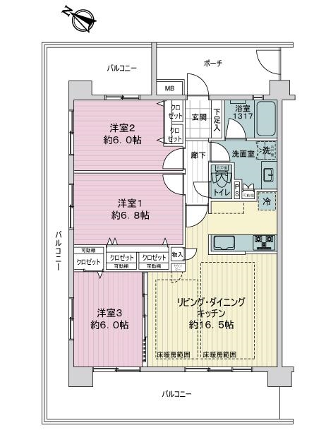 ・3面バルコニー(34.28平米)