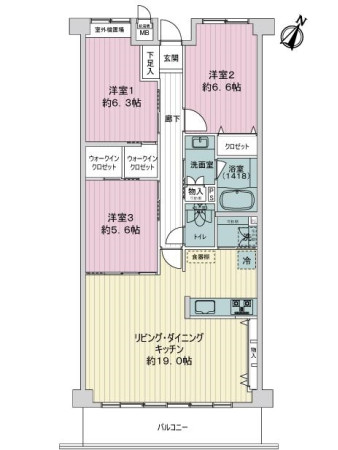 ・LDKおよび各居室に収納があり、洋室1・洋室3にウォークインクロゼットがあります。