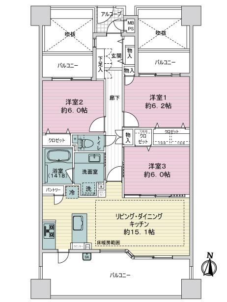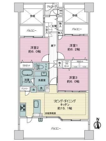 ・逆梁ハイサッシ、アウトポール設計により採光と開放感のある南向き住戸