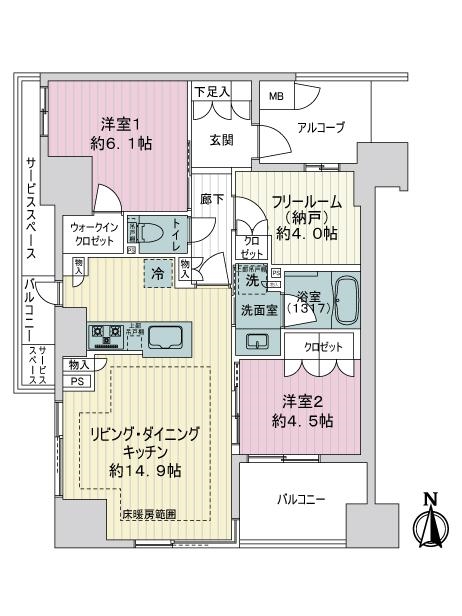 部分面積 - サービススペース 4.66㎡/アルコーブ 4.54㎡
