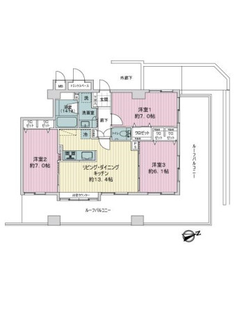 ・ルーフバルコニー付き住戸です、面積(40.95平米)