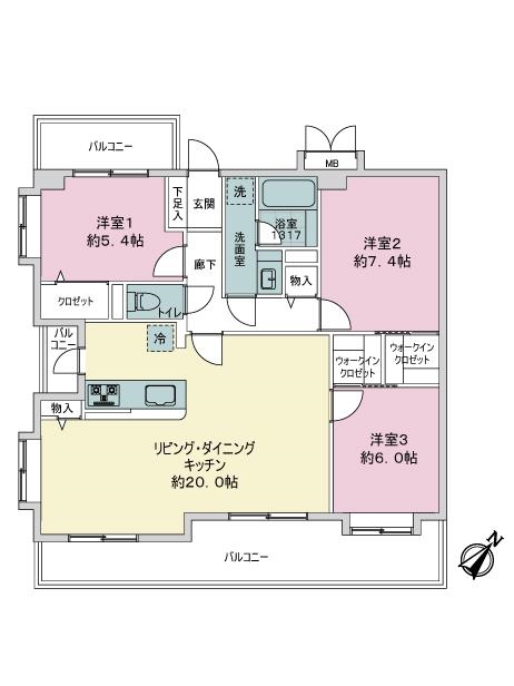 ・LDKは対面式キッチンの約20帖