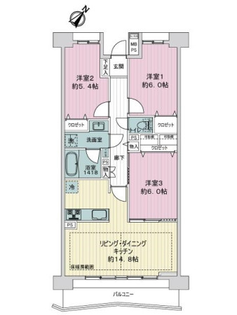 ・床暖房範囲は、営業担当までお問い合わせください。