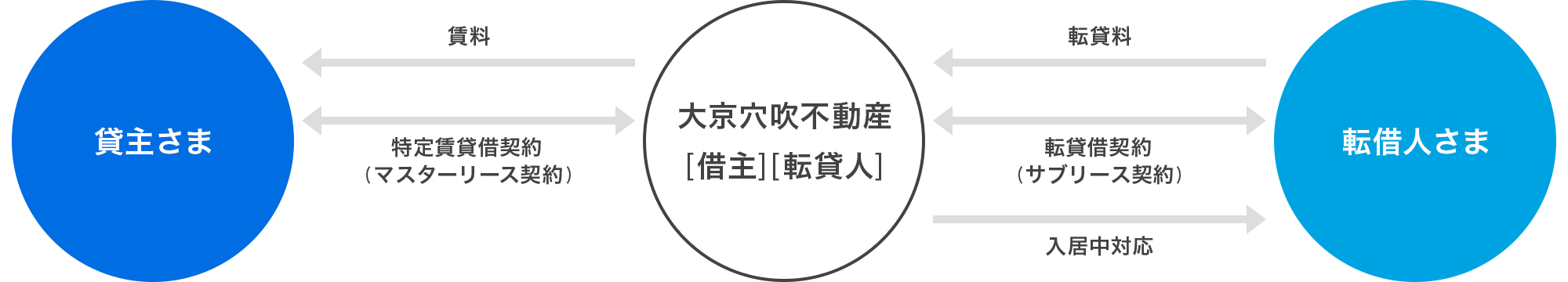 ※2:空室時でも、弊社より賃料をお支払いいたします(賃料支払い免責期間を除きます)。転貸借契約解約後借り上げ賃料の見直しを行い、借り上げ賃料の改定をする場合があります。契約条件にかかわらず借地借家法第32条第1項に基づき賃料減額請求をすることがあります。