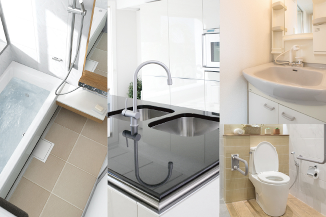 | 部位 | シンク、トッププレート、壁面、IHヒーター、蛇口 | 浴槽、天井、蛇口、壁面、扉内側、窓枠、床 | キッチン、浴室、洗面化粧台、トイレ |