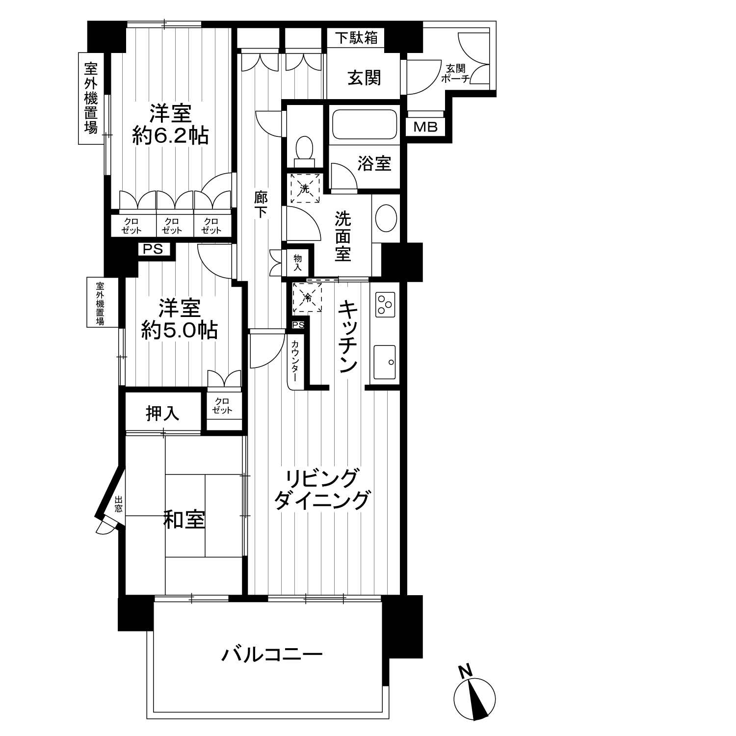 各お部屋にはクロゼットが備え付けられているため、