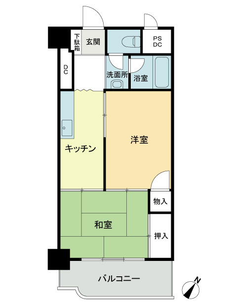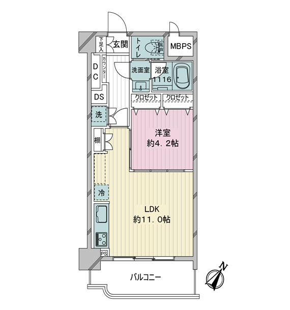 お部屋の間取りは1人暮らしにピッタリな1LDK。